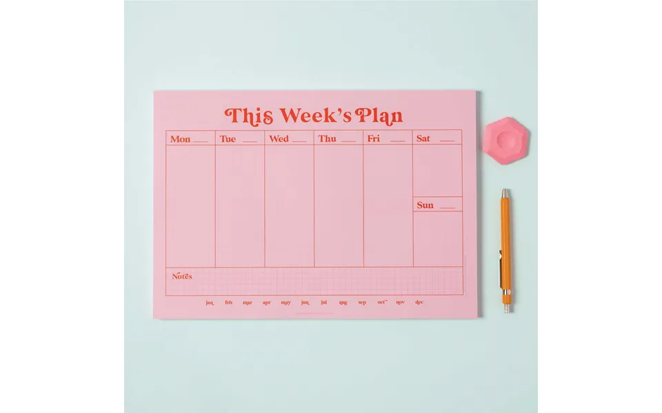 With this pink & red vertical layout weekly planner pad. Plus, it will add a little wes anderson vibe to your desk.. Level up your productivity by having a clear plan in place
