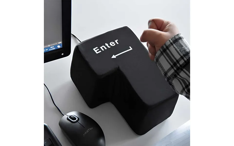Introducing the big enter button desk cushion your ultimate stress-relief solution crafted with precision, this oversized enter key is more than just a cushion it's your gateway to tranquility. Designed to alleviate stress, simply connect it to your computer or laptop via the usb cable and unleash your frustrations with a satisfying punch. Let this big enter button be your trusted ally in navigating through hectic days. Whether you're in need of a momentary escape or seeking to streamline your workflow, this multifunctional device seamlessly integrates relaxation with productivity. Reclaim control over your stress levels with the big enter button desk cushion.