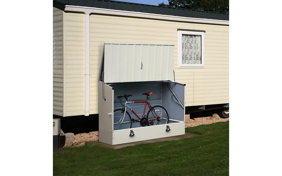 Our cream protect-a-cycle is unique and is the only cycle store to be tested and certified by the loss prevention certification board and awarded the lps1175 security rating 1. In addition, this bike store comes to you having achieved the police sbd mark secure by design preferred police specification. This bicycle storage unit has been designed to offer you unbeatable security and convenience at an affordable price. Boasting a high-quality build, with all stainless-steel fasteners, this cycle store is incredibly easy to use. It benefits from a clever spring assisted opening action, allowing you complete access, and with up to four padlock points ensures your cycles are well protected from both the weather and thieves. This premium bike store is supplied complete with two stainless steel hasps and two high-security padlocks sold secure silver approved that will deter even the most resolute thief. If not, then the heavy-duty ground anchor again sold secure silver approved , complete with high-security cable loss prevention board tested , will prevent your cycles from being removed. This metal cycle store is designed to be bolted down onto a hard concrete surface from the inside of the integral metal base, which comes complete with fixings for securing to concrete. Manufactured in the uk from a special pvc coated galvanised steel, this bike store is fire resistant and maintenance-free, saving you time and money. Furthermore, the panels are guaranteed for 25 years. Available...