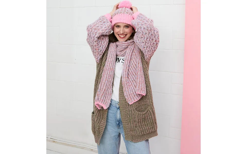 Beanie and scarf set unique twist made from pinks, blues, khaki tones Chunky fisherman rib Super soft vegan yarn...show more