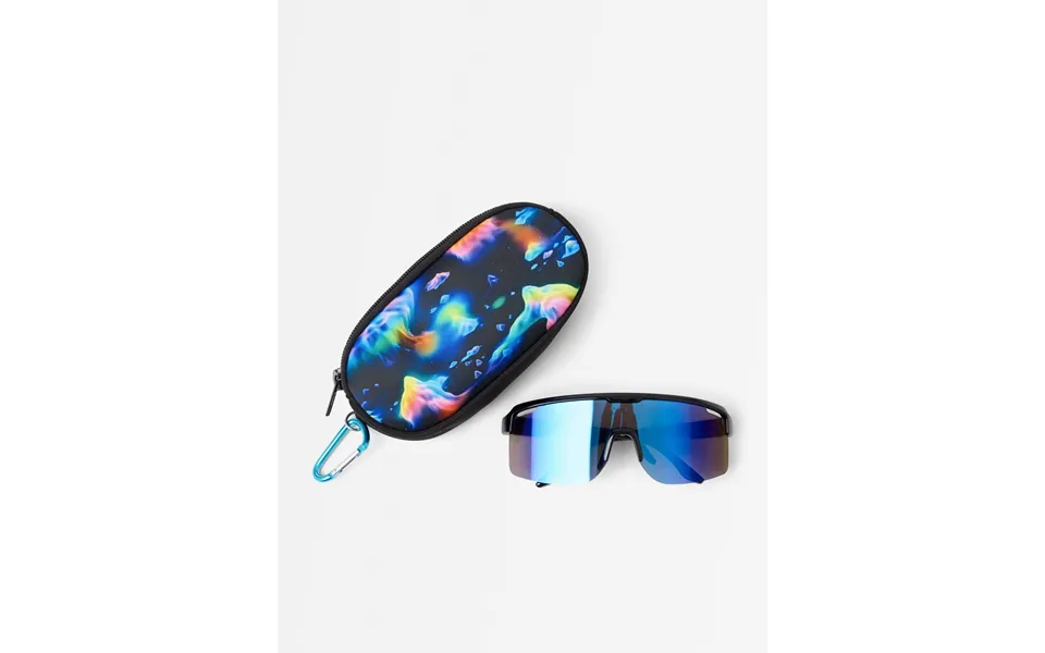 Protective sunglasses with mirror lenses. It comes with a case with print.