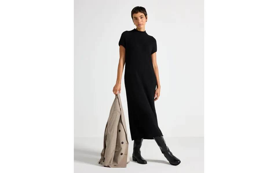 Soft, knitted midi dress with a straight silhouette, short sleeves and a mock neck.