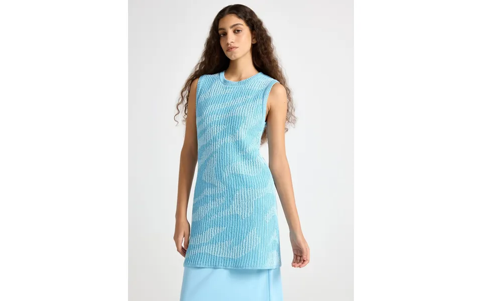 Knitted, sleeveless dress with fitted silhouette and allover pattern.