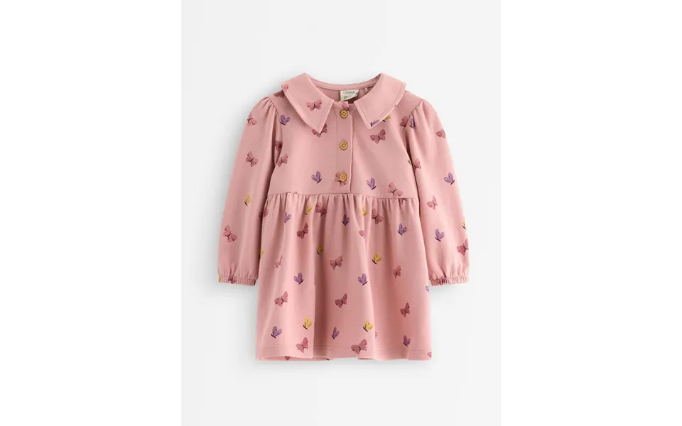 Long-sleeved dress in soft cotton jersey with collar, button placket, and a flared fit.