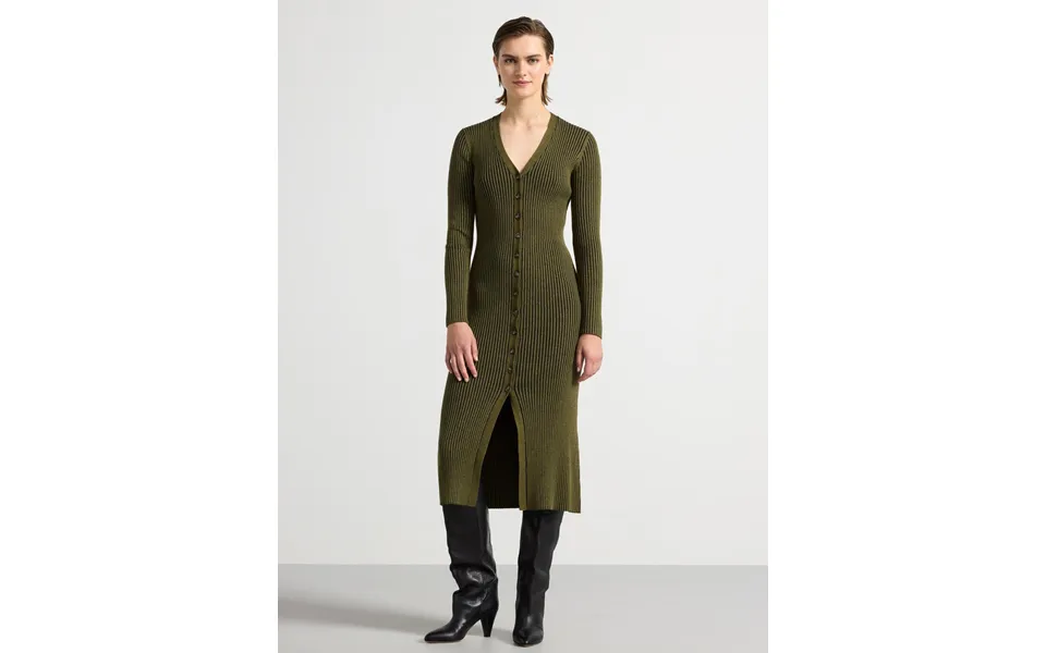 Ribbed midi dress with a figure fit silhouette, long sleeves and buttons at the front.