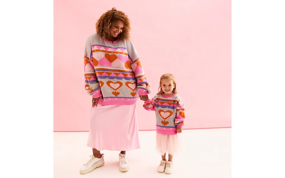 Design as per second cut out image could this be any cuter two of our poppy heart intarsia knitted jumpers in a matching set for an adult and child, bringing you closer together and full of love the matching set of knitted jumpers is an adorable way to coordinate, while also keeping cosy and chic.