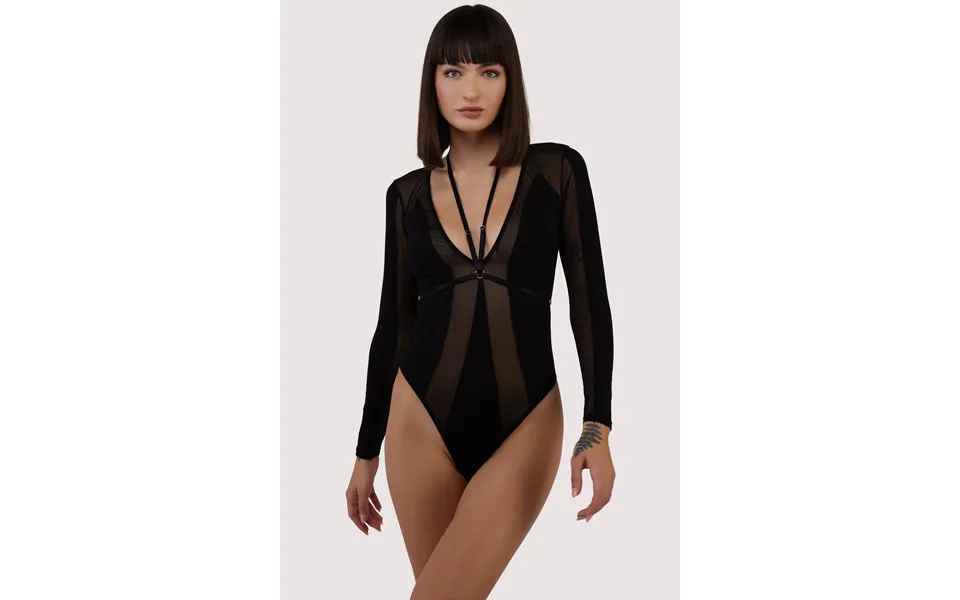Dive into the seductive allure of the wolf & whistle morgan black panelled mesh and micro plunge body a jaw-dropping blend of sultry black, teasing...show more