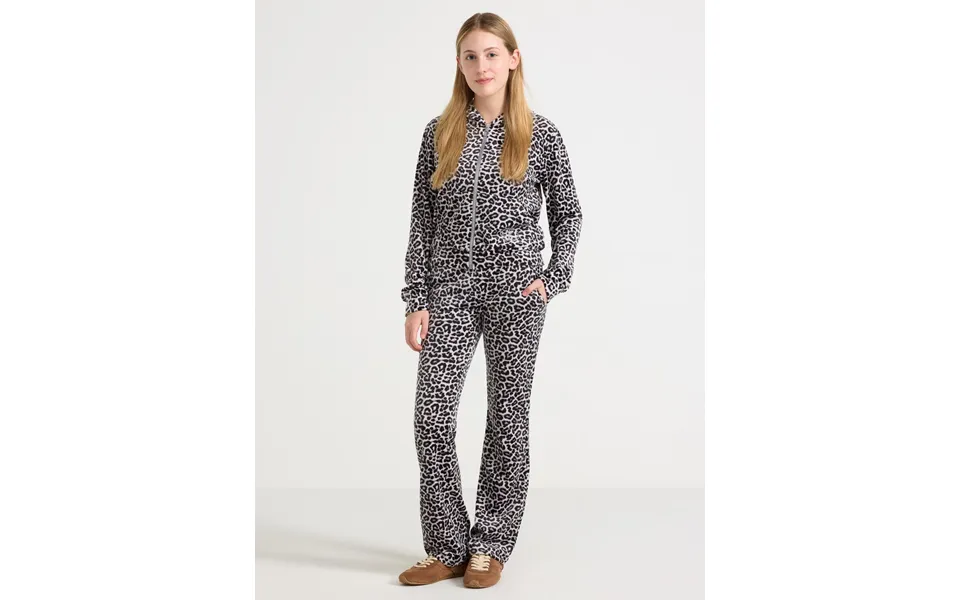 Soft jersey trousers in velour with flared legs, pockets and a wide elastic waist with drawstring.