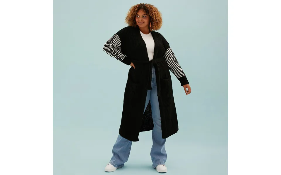 You asked, we listened introducing our first ever black maxi cardigan.. But with a cara & the sky twist of-cause with a black body & a unique mono-chrome sleeve detail, becca is in a relaxed fit and a longer-line cardigan length, perfect for wrapping up warm on a cold winter's day. The unique mono sleeve design adds a touch of unique style to the cardigan, while the belted waist cinches in your figure for a flattering silhouette. Don't forget the finishing touch