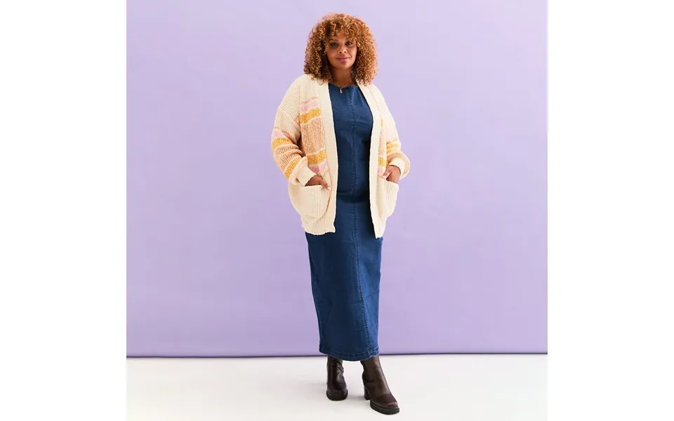 Balloon sleeve cardigan relaxed chunky knit cardigan made from recycled cotton blend british made this style is oversized in shape. If you prefer a neater fit, you may want to try the size smaller our dani chunky stripe cardigan, in our signature balloon sleeve cardi shape, but in a fresh cotton mix yarn made from a recycled cotton blend, this cardigan is the perfect spring cardigan. Its oversized fit and balloon sleeves give a relaxed, laid-back vibe. The sunset twist stripe in pink, yellow, and biscuit tones adds a fun twist, while the slub yarn adds texture.