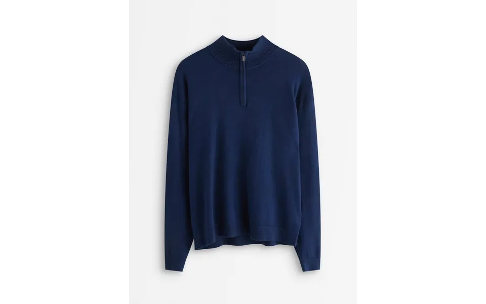 Soft knitted jumper with half-zip to front and ribbed cuffs and hem.