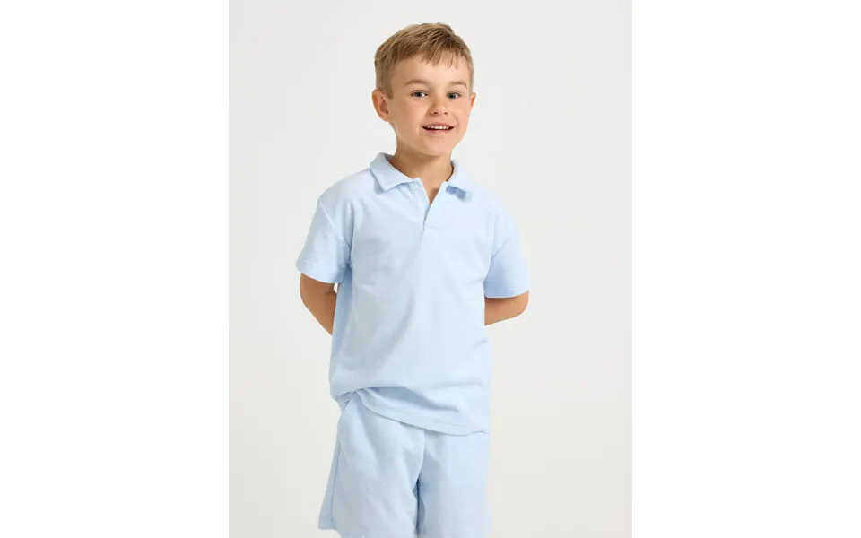 Short-sleeved shirt in cotton jersey terry with collar and straight fit.