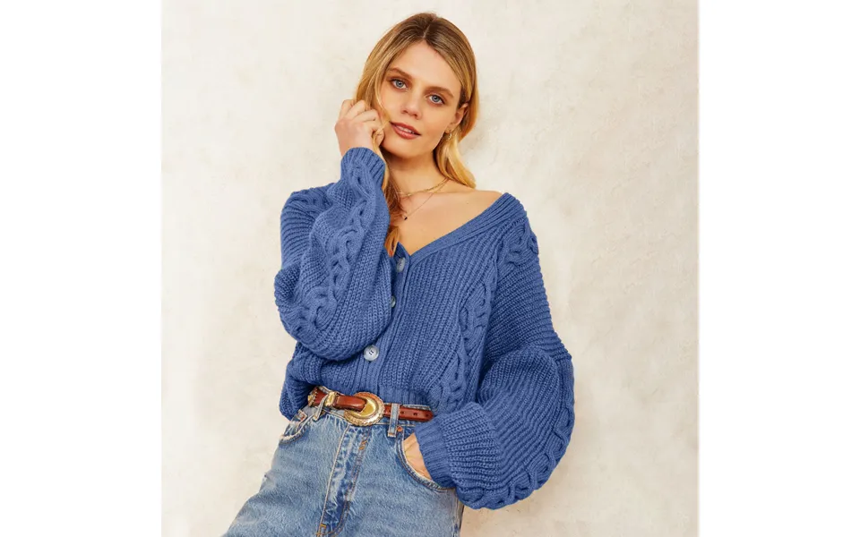 Cable knit cardigan in denim blue playful balloon sleeves mid-weight yarn in a fisherman rib british made this style is oversized in shape. If you prefer a neater fit, you may want to try the size smaller short & sweet, but with a touch of attitude, the sienna cable knit cardigan brings any outfit to life , w ith it’s unique abstract cable featured on the front, back and sleeve . With a dropped shoulder & our signature balloon sleeve, the shorter length makes her perfect to style with jeans, layer over midi dresses, or team back with her matching co-ordinated skirt chloe designed in london exclusively for cara & the sky, style sienna off the shoulder for that extra detail. The length of this style is a shorter length to hit you just at the top of your mom jeans. If you have a longer body, you may want to try the size bigger to give you that bit of extra length yarn composition: 76% acrylic 24% nylon.