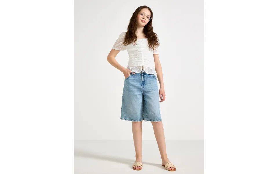 Denim shorts with slight stretch, a regular waist and wide legs.