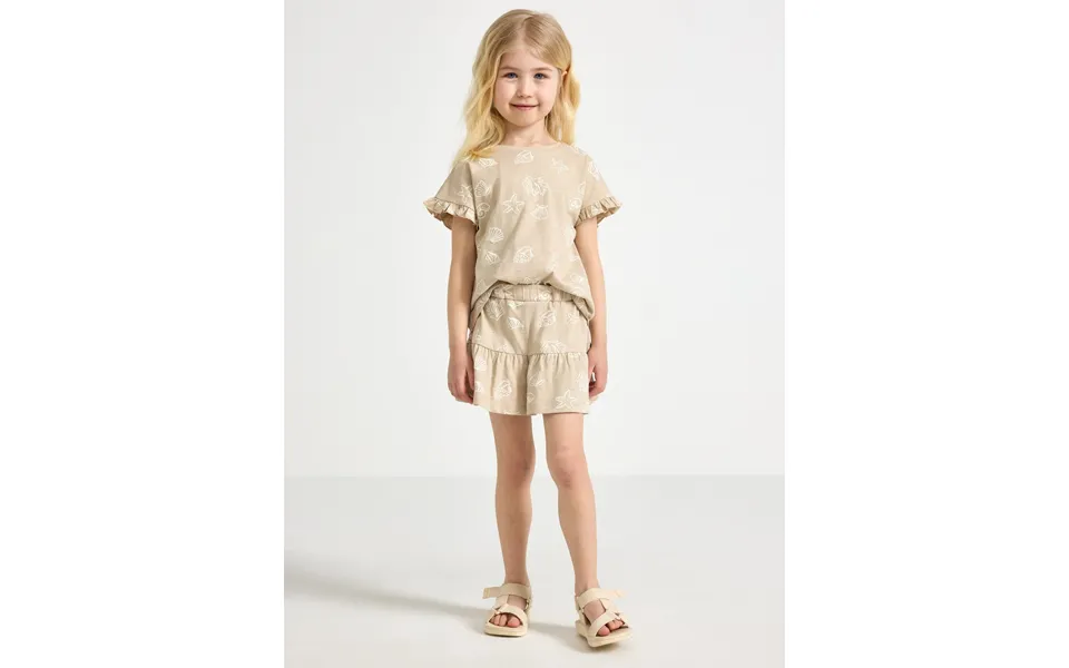 Shorts and skirt in one. This skort comes in soft slub jersey and have an elastic waist.