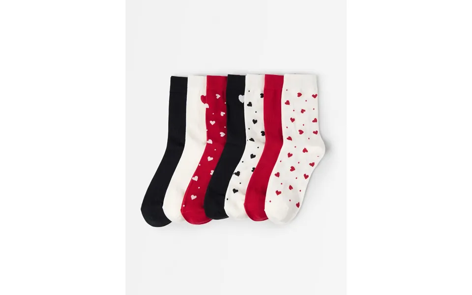 Seven pairs of socks in both ribbed and plain textures and in different colours.