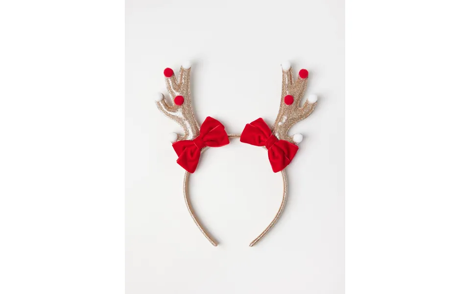 Festive alice band with glittery reindeer horns and bows.