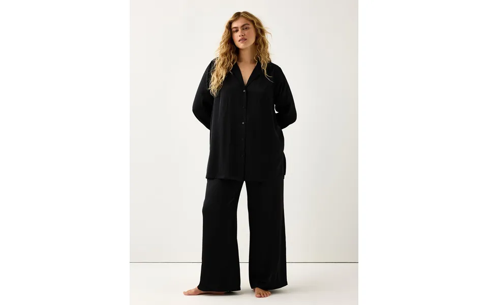 Luxurious pyjama set with a button-down shirt and full-length, drawstring-waist trousers.